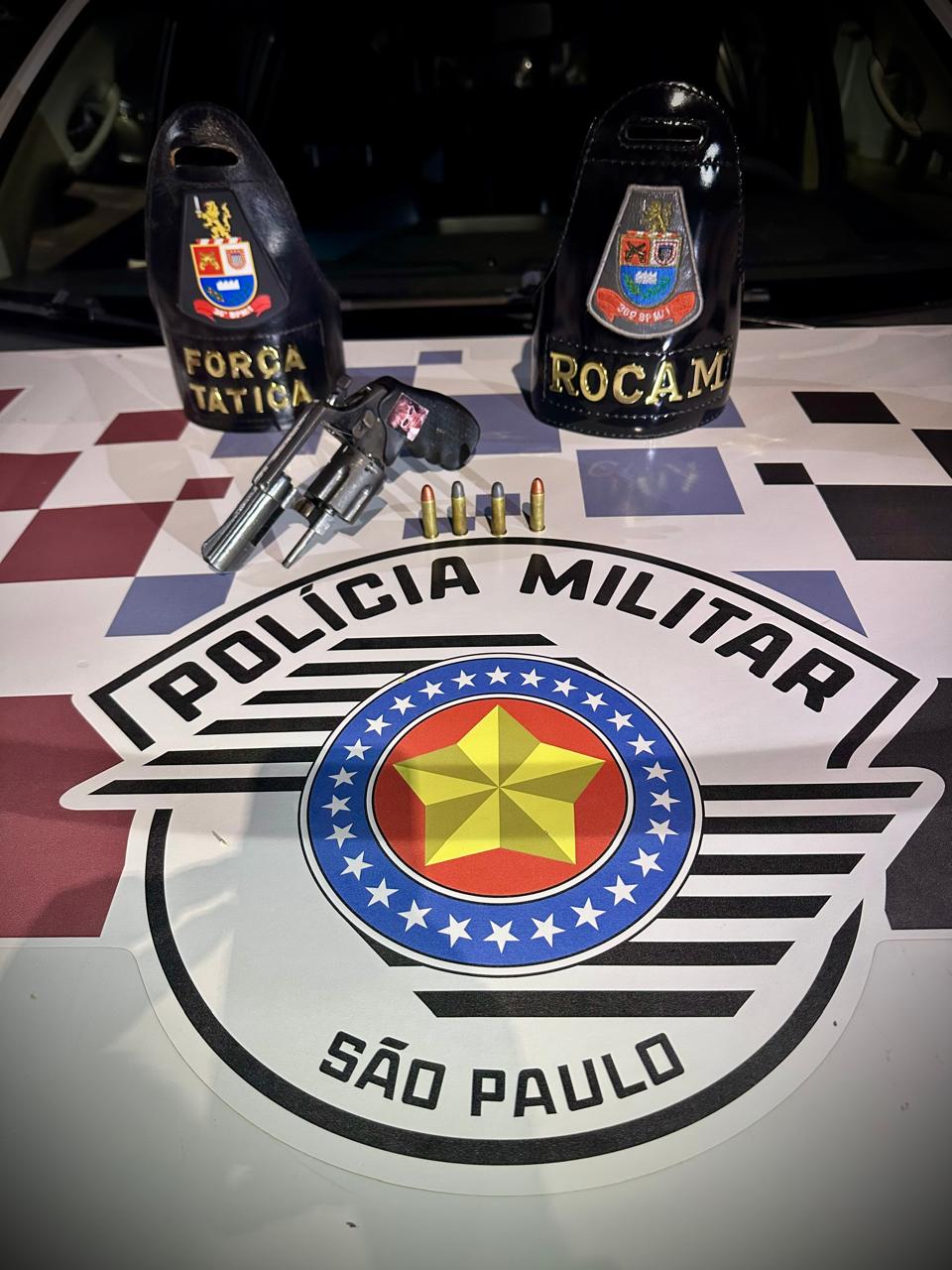 Revólver calibre .38 e munições foram apreendidos durante ação da Polícia Militar no Jardim Nova Conquista