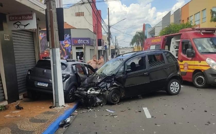 Colisão entre carros deixa feridos no Centro de Leme e mobiliza resgate