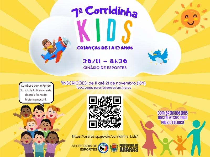Inscrições para a 7ª Corridinha Kids de Araras começam nesta terça-feira (11)