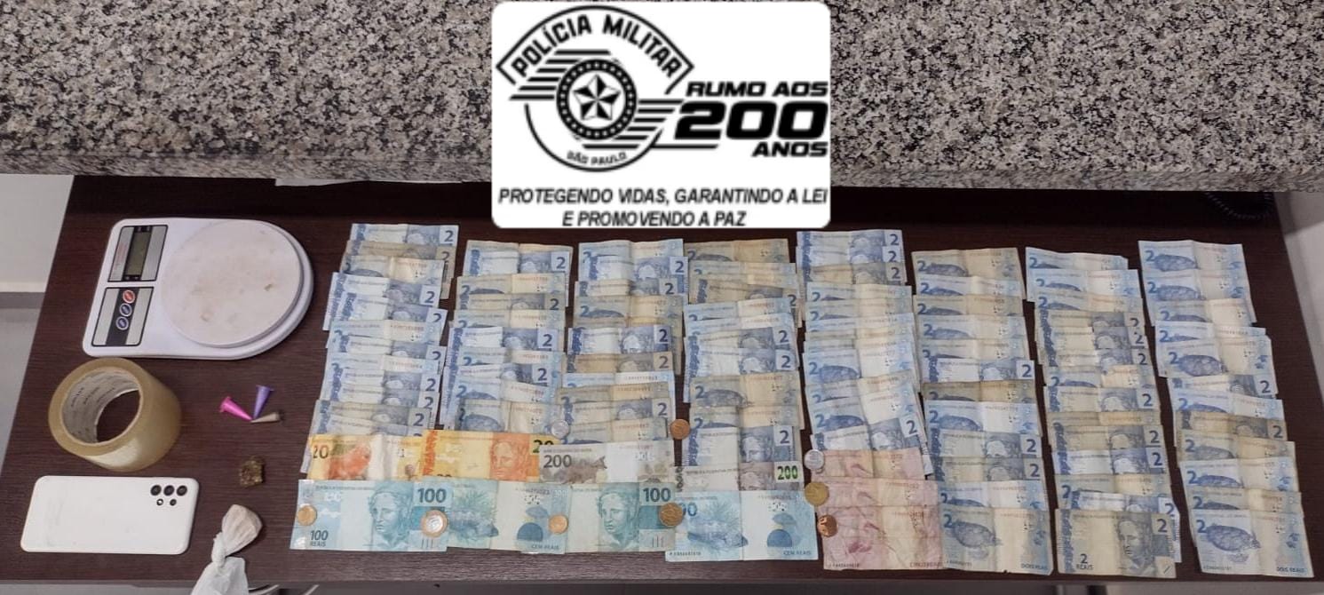 Polícia Militar flagrou negociação e apreendeu cocaína, crack, dinheiro e celulares durante patrulhamento na região