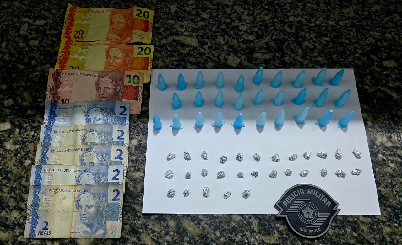 Ocorrência foi registrada no Jardim Primavera e resultou na apreensão de 87 porções da droga e dinheiro em espécie