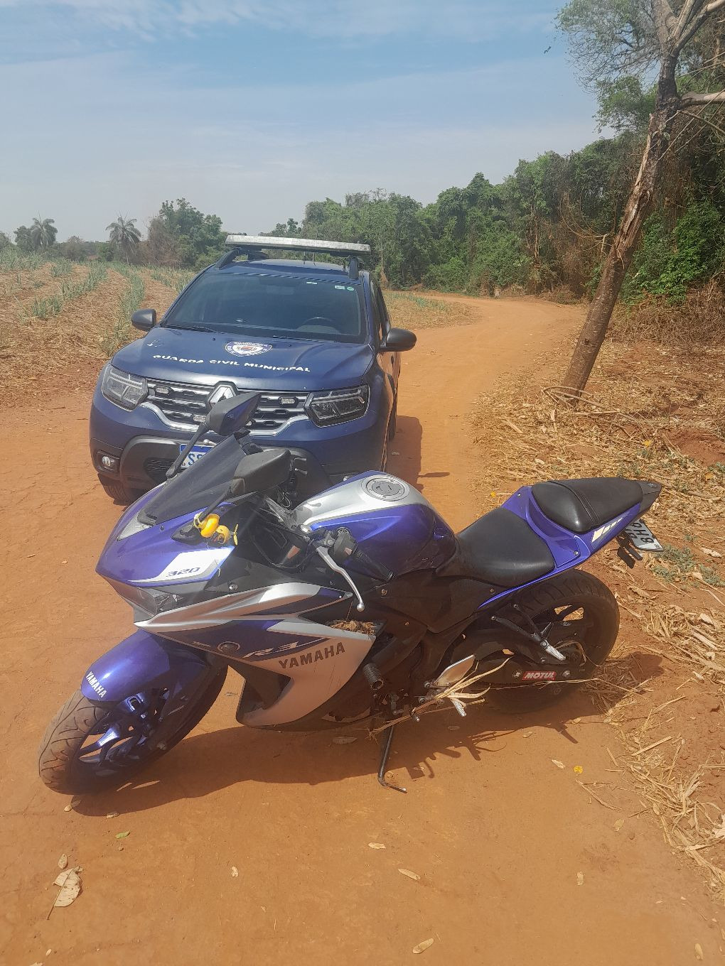 Veículo estava camuflado com folhas e galhos para dificultar a localização; foi recolhido ao pátio e caso encaminhado à Delegacia
