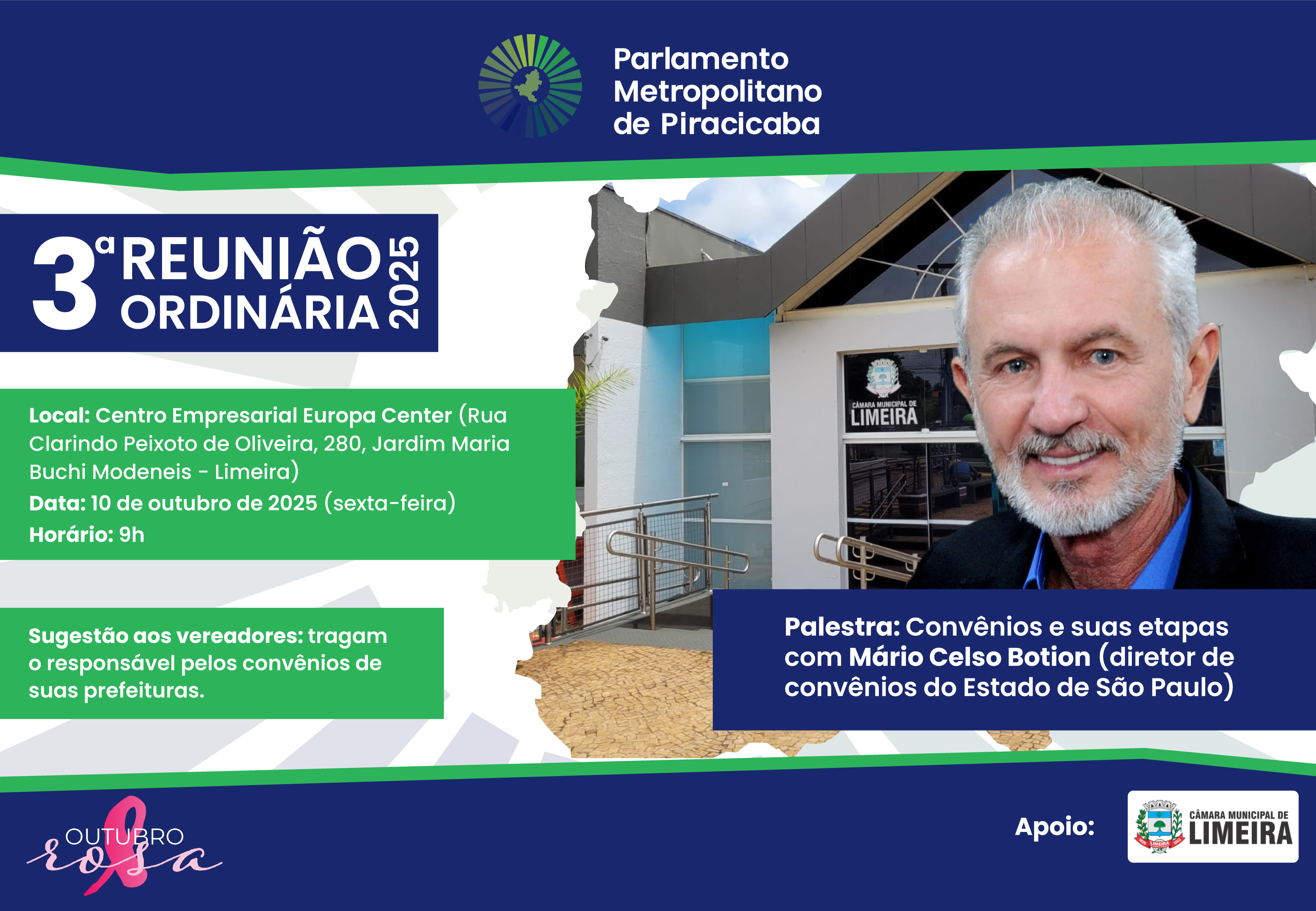 Evento acontece no dia 10 de outubro, em Limeira, e contará com a participação de vereadores de 24 municípios da região