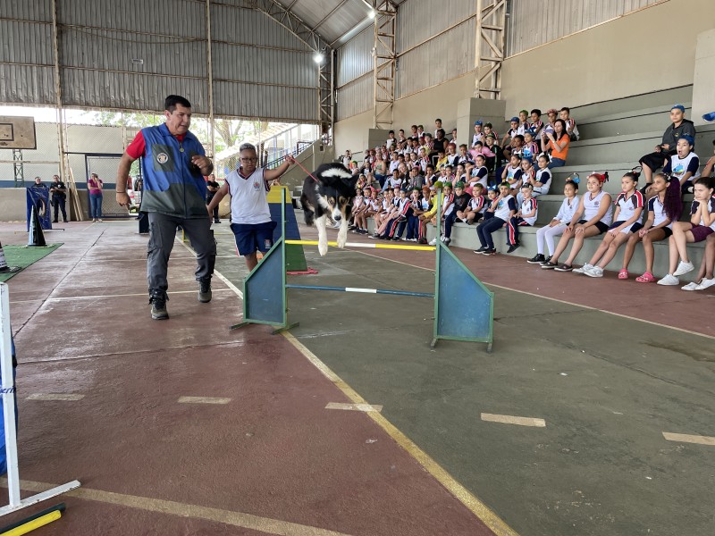 GCM leva cães adestrados a escola de Araras em ação especial pelo Dia das Crianças