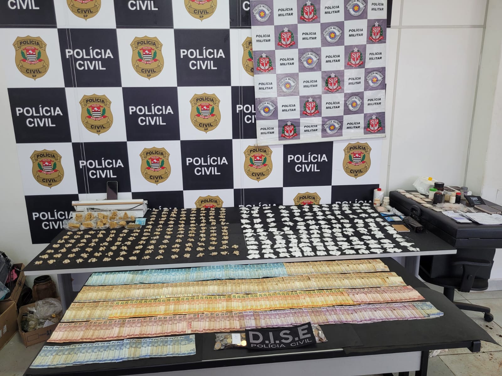 Ação conjunta do Ministério Público, Polícia Civil e Polícia Militar ocorreu no Jardim Progresso e resultou na apreensão de entorpecentes, dinheiro e materiais usados no tráfico