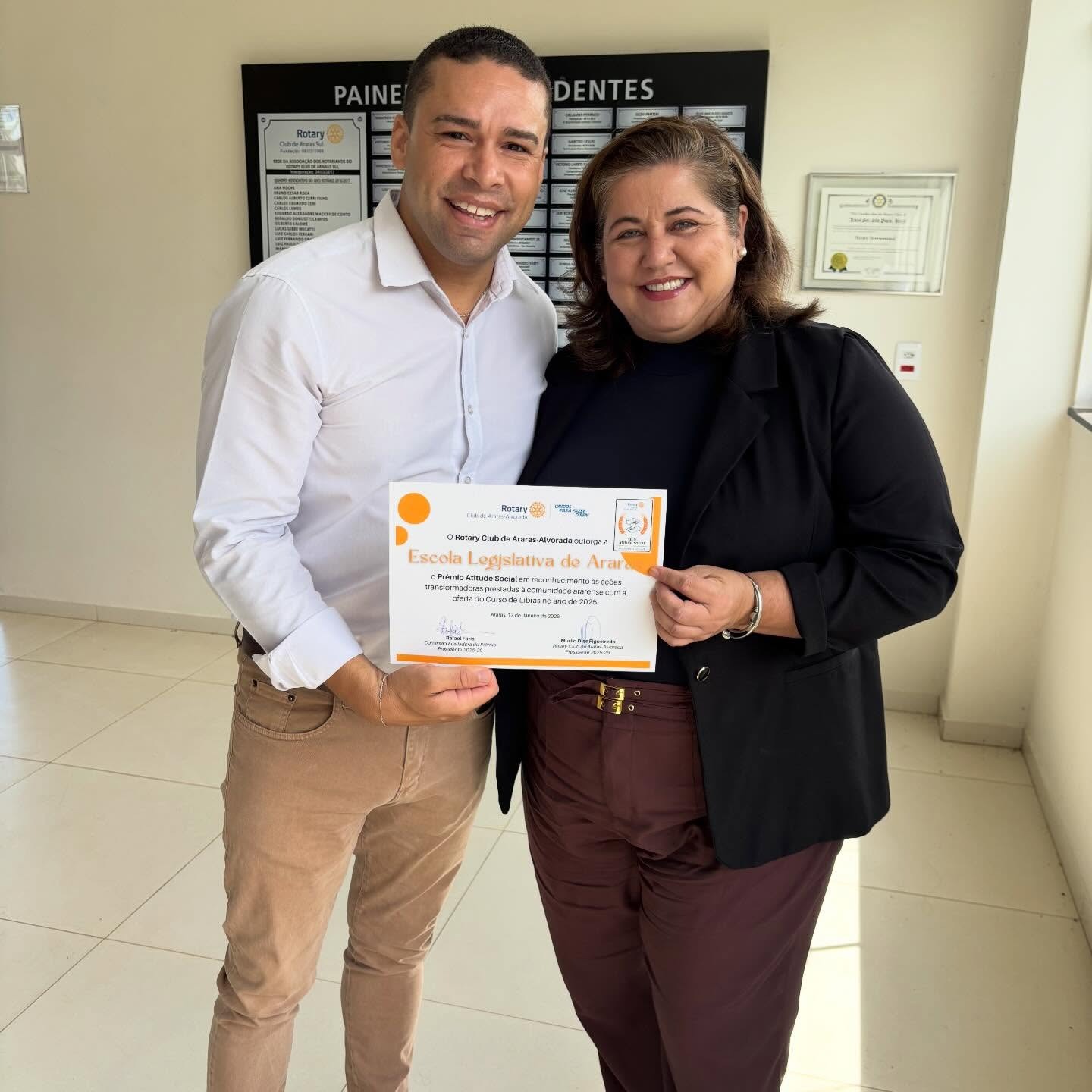 Reconhecimento destaca impacto do curso de Libras promovido em parceria com o Rotary Club Araras Alvorada