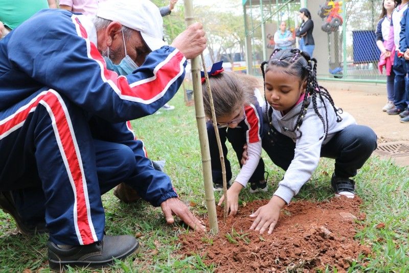 Alunos plantam mudas em comemoração ao Dia da Árvore