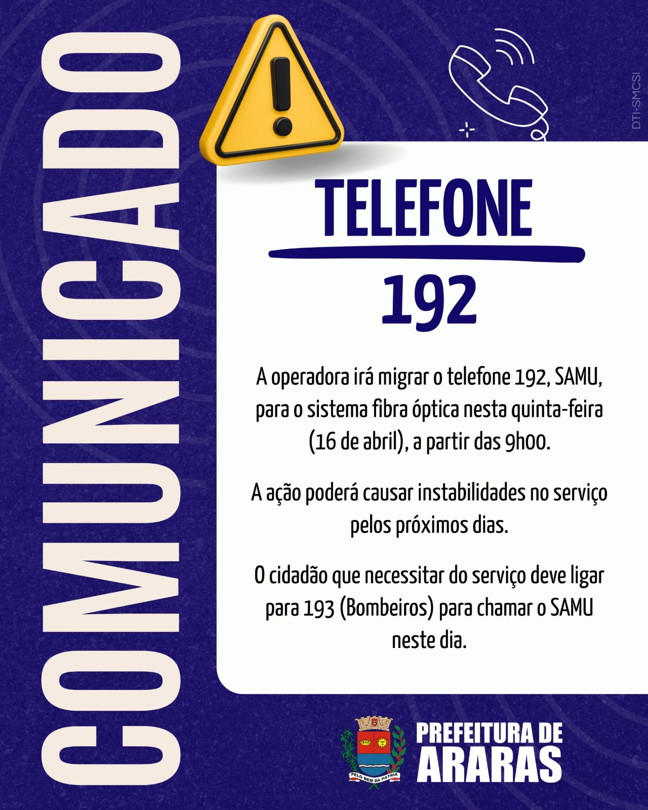 Serviço do Serviço de Atendimento Móvel de Urgência passará por atualização técnica e população deve ficar atenta a alternativa temporária