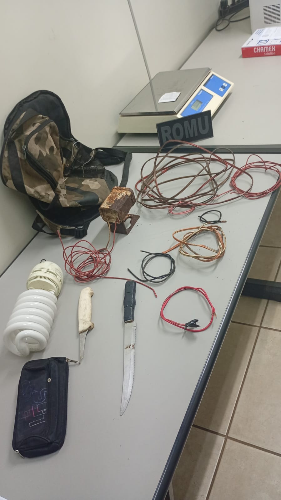 Suspeito ameaçou vítima com facão ao ser confrontado e tentou esconder objetos dentro da casa onde estava