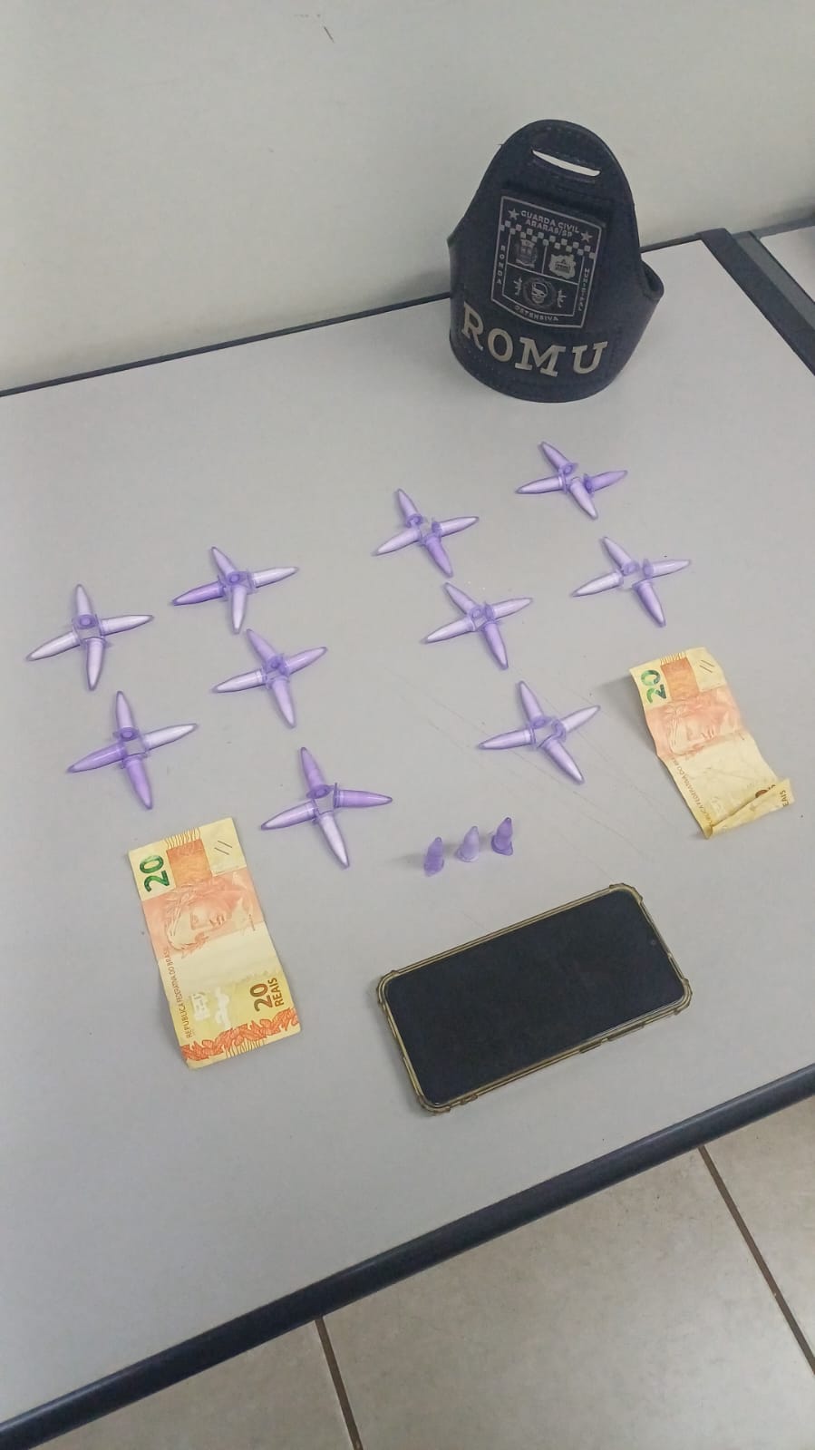 Suspeito foi flagrado com entorpecentes, dinheiro e balança durante a Operação Impacto; outro homem foi ouvido e liberado