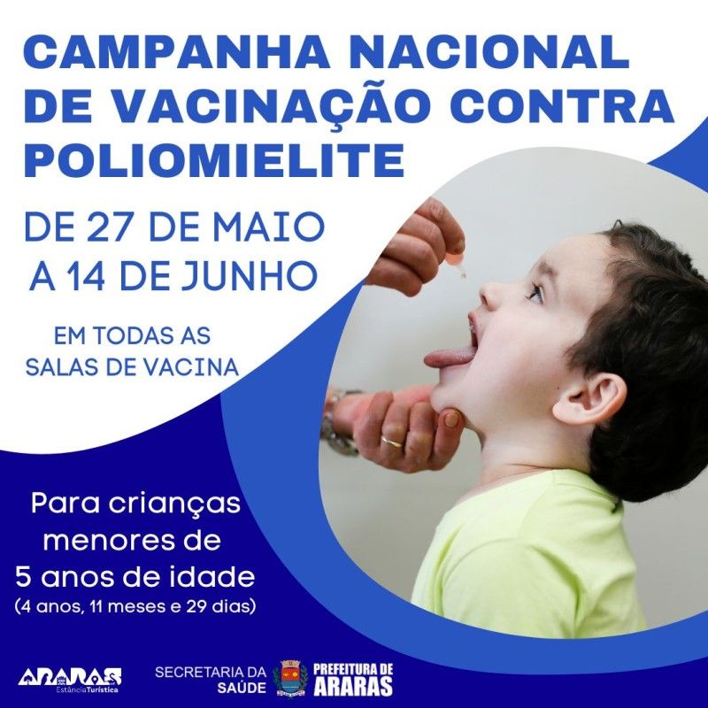 Campanha de Vacinação contra a Poliomielite segue até 30 de junho em Araras/SP